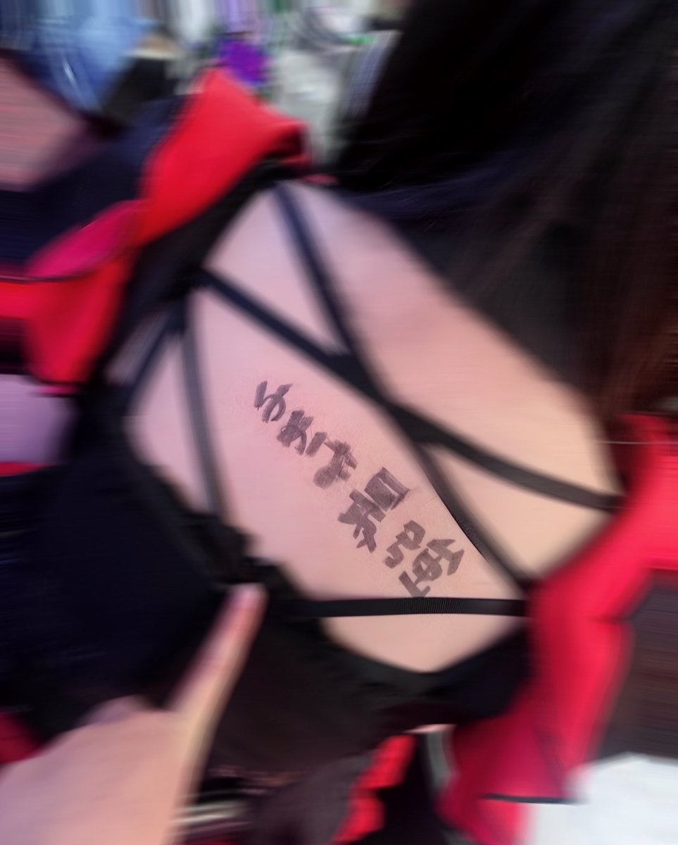 昨日背中に「ゆめは最強」ってえんまちゃんにタトゥー入れられたwww https://t.co/o9tpZPpShQ