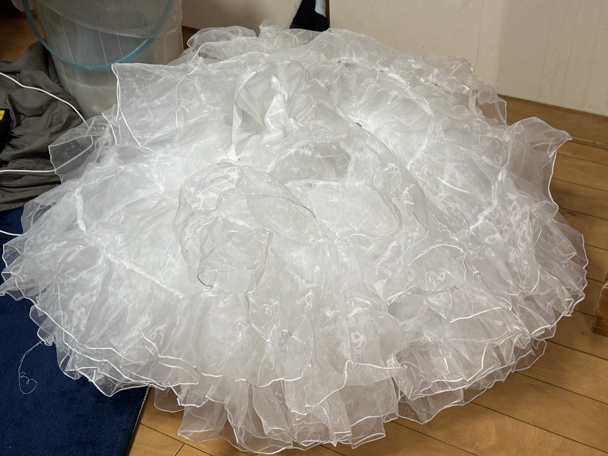 ブランシェ@衣装制作期間@make2blanshe・Mar 21スカートのボリュームを考えてちょっと長いパニエと短いパニエの2枚重ねにしたらいかんじ!って思って脱いだぬけがら😇