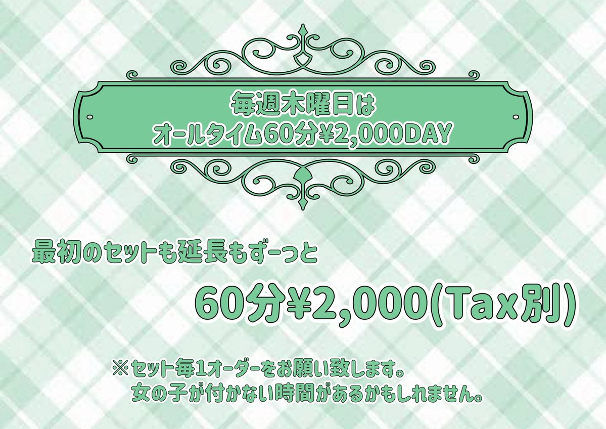 ご新規様のご来店限定で飲み放題プランのお時間を60分¥3,000(Tax別)→120分¥3,000(Tax別)‼️ ※お店の状況で、女の子が付かない時間もありますのでご了承ください! ※ご来店頂きましたお客様1人につき1杯は必ずキャストドリンクのご注文をお願いしております。