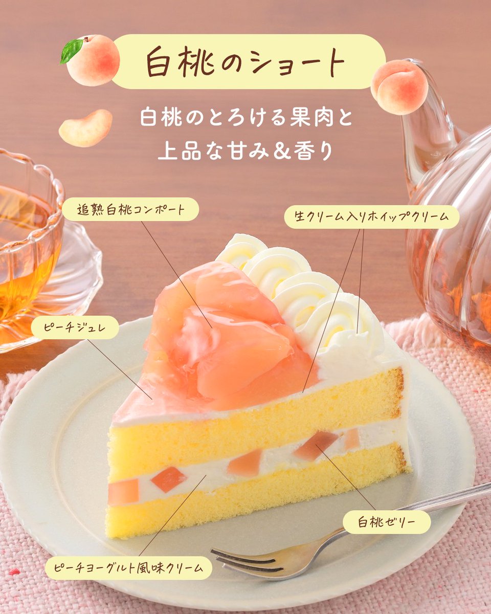 白桃のとろける食感と上品な甘み、クリーム、スポンジが一体となって奏でる爽やかなハーモニー