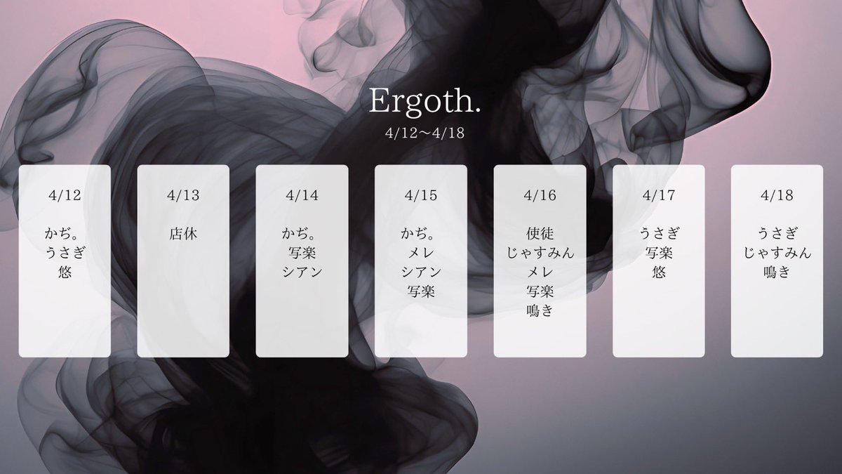 ≪Ergoth.≫ コンカフェ×シーシャバー@shisha_ergoth・Apr 12