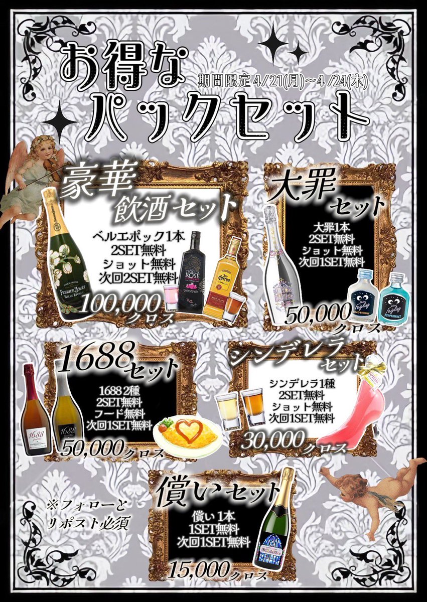 もか@L0velynyang・Apr 20やばーい!ベルエポも大罪も飲んだことないはじめてください♡(償いもおいしーですよ✨️) 2セット無料次回も無料とかあつすぎるඉ ̫ ඉ 22日-24日おり❗️